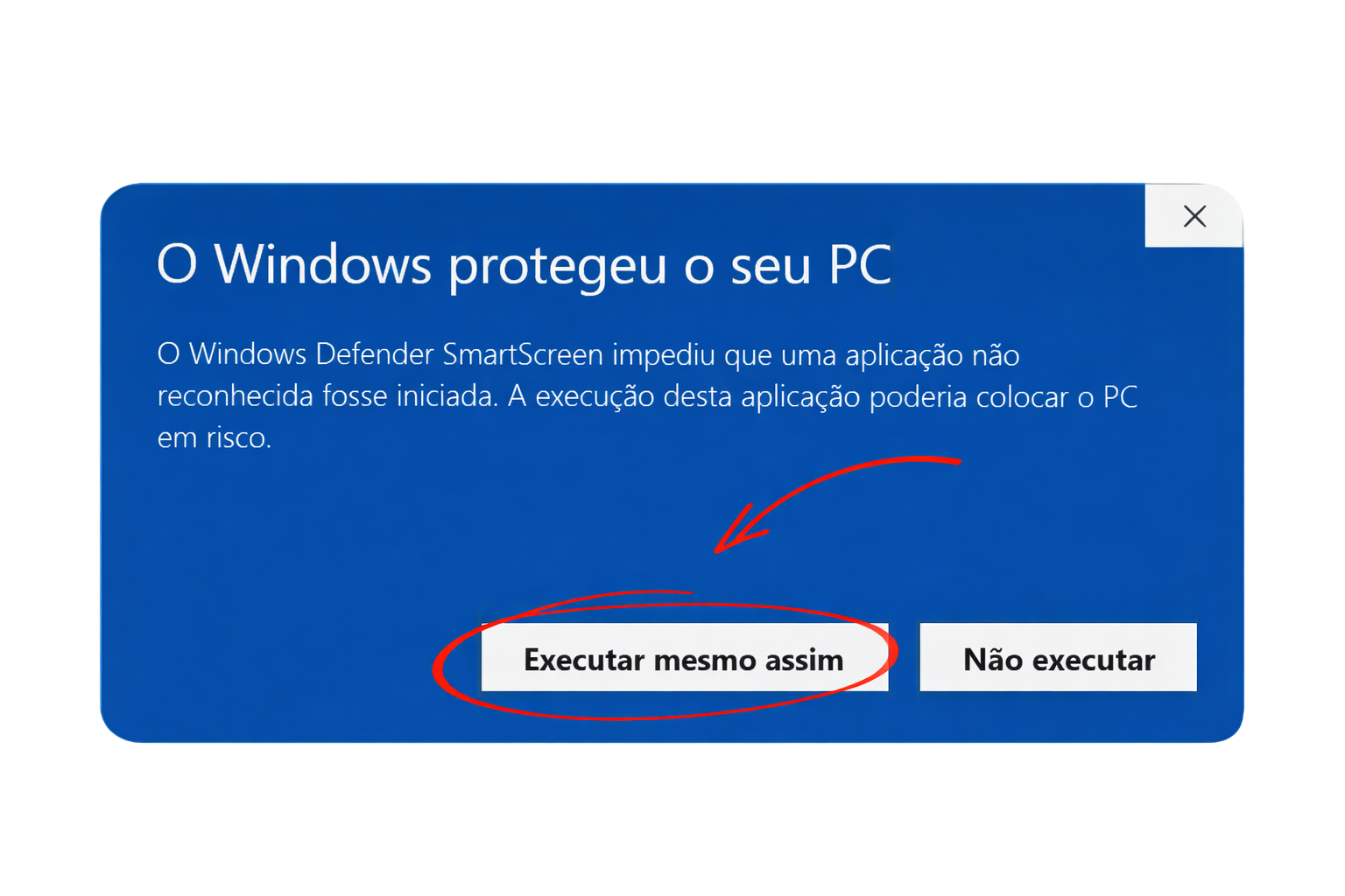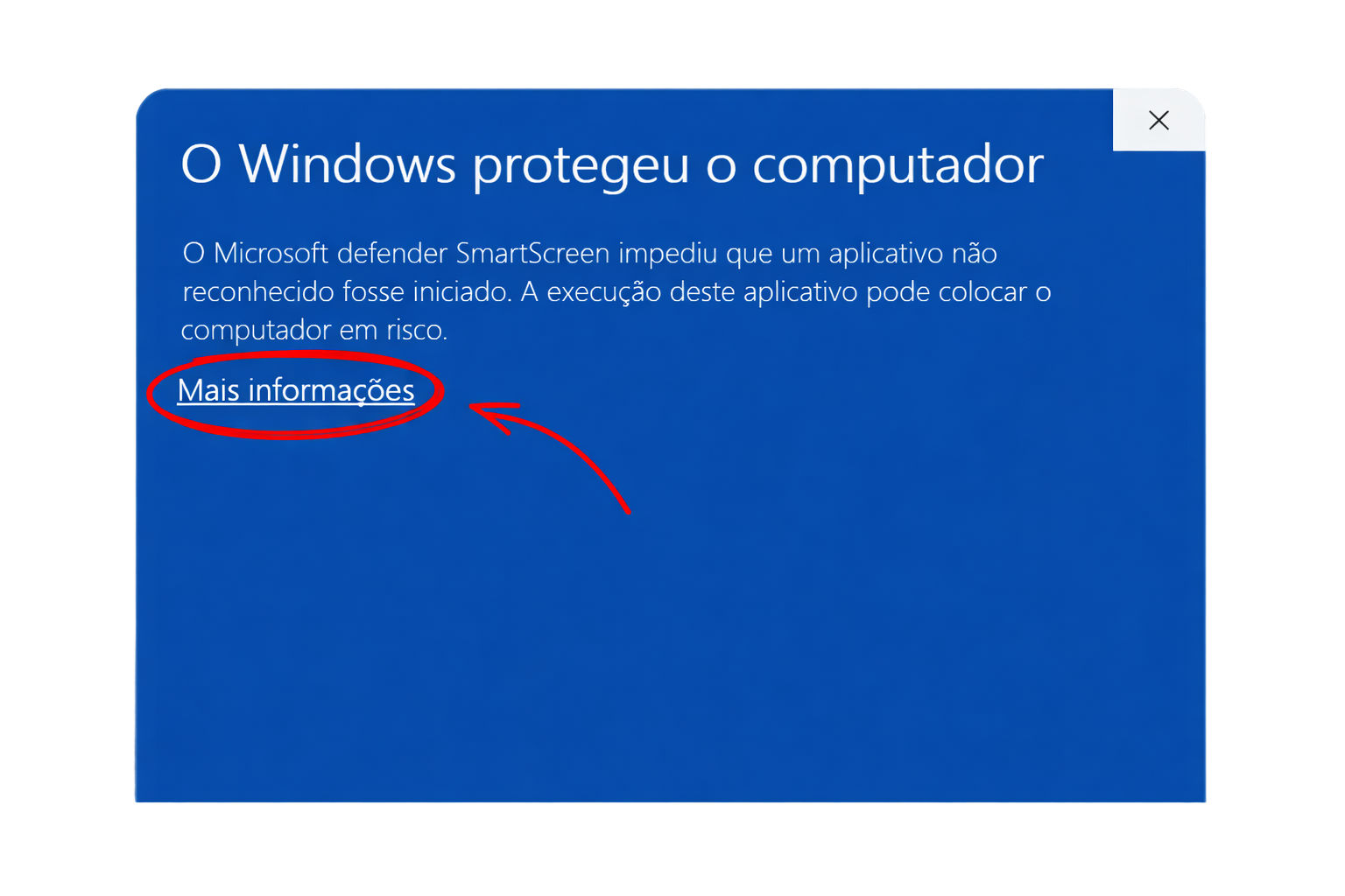 Caso o Windows bloqueie o arquivo, clique em “Mais informações”
