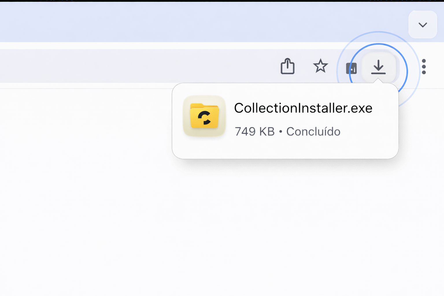 Quase lá! Agora, basta acessar seus downloads no canto superior direito e abrir o arquivo ”collection.exe”